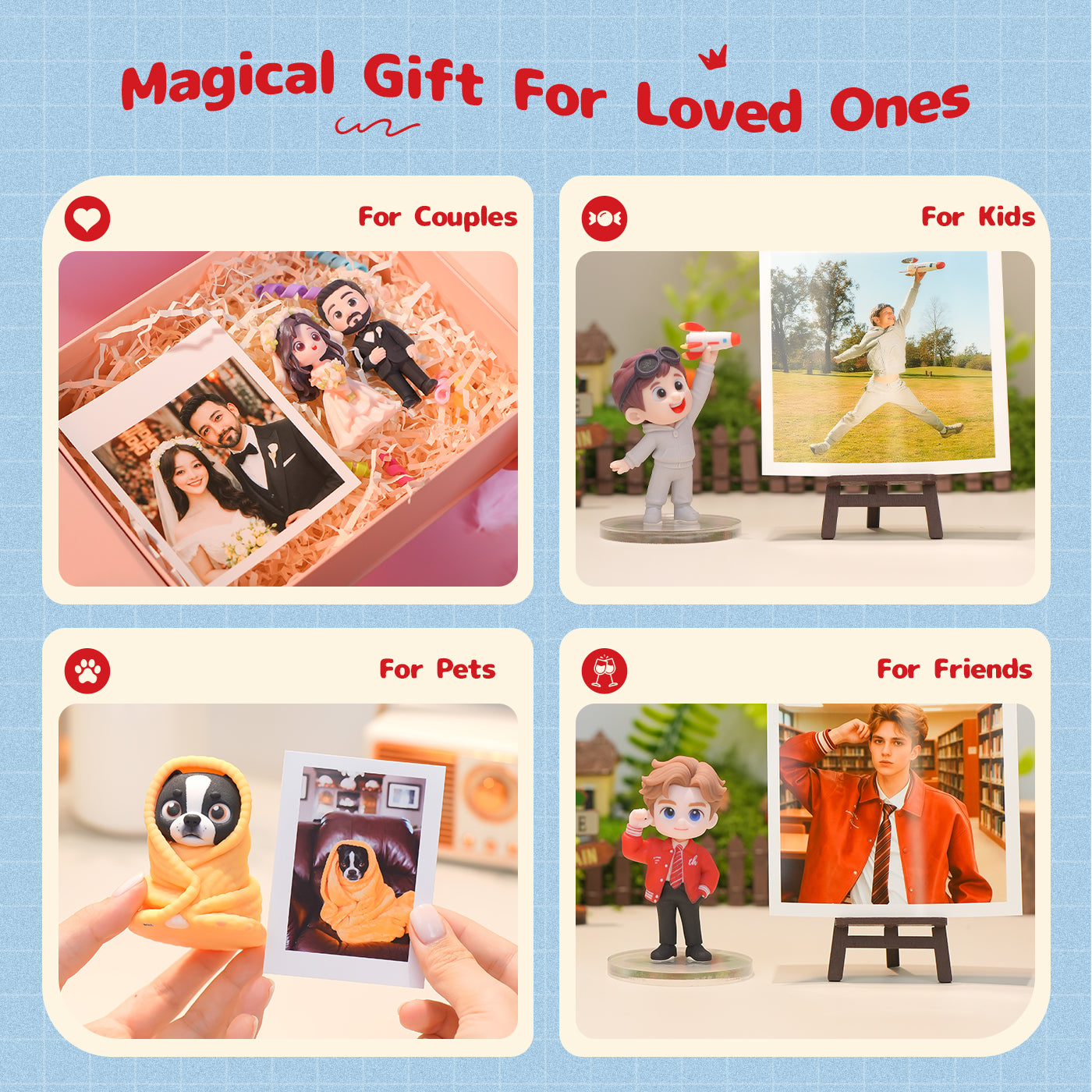 • 100% Personalized Customization – Upload a photo and we'll turn it into an adorable 3D statue.